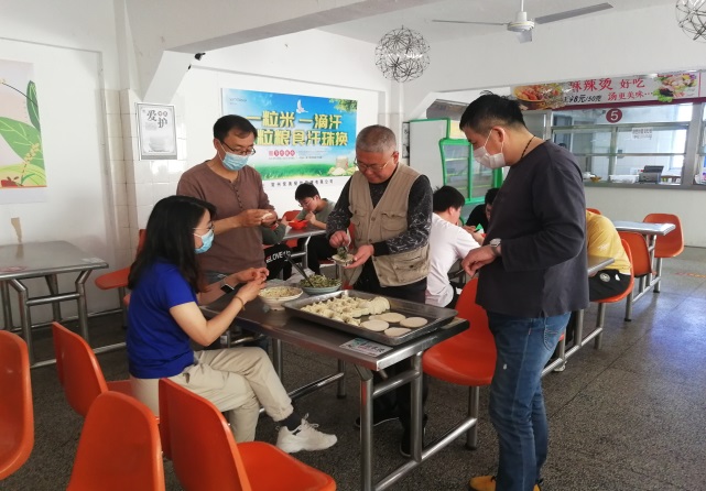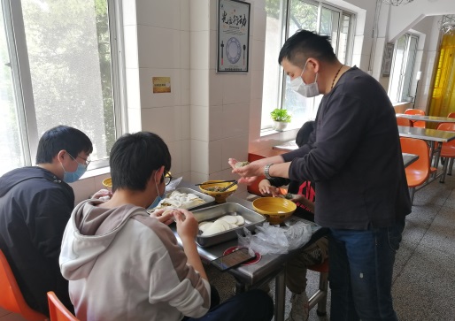 现在,虽然新冠疫情还没有得到完全遏制,但我们更多了战胜疫情的方法、措施和决心。在本次五一假期中,学校还有许多同学老师受到疫情的影响不能离校放假。校区积极组织假期活动,丰富住校业余生活,调剂心理情绪,最大程度为留校同学创造良好环境,过一个丰富愉快的假期。为此,校区组织了包饺子活动,同学们踊跃参加,拌肉馅的、拿饺子皮的、清理托盘的,大家忙得不亦乐乎,校区的几位值班老师指导同学们包饺子并交流各地饺子的不同包法,就见各色包法的饺子在师生的手中蹦了出来。