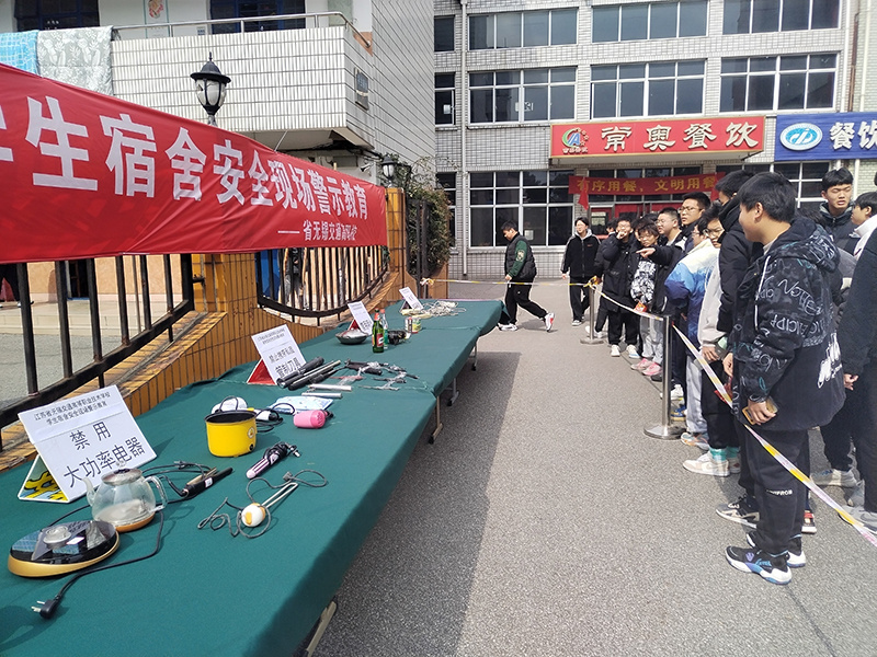 在期初阶段,在人员高度密集的学生宿舍进行安全现场展示专题教育,不仅宣传了宿舍安全常识;更是给学生敲响了宿舍安全的警钟,从思想上提升了学生的安全意识,相信本次警示教育将为广大同学在校生活学习打下坚实的安全基础。