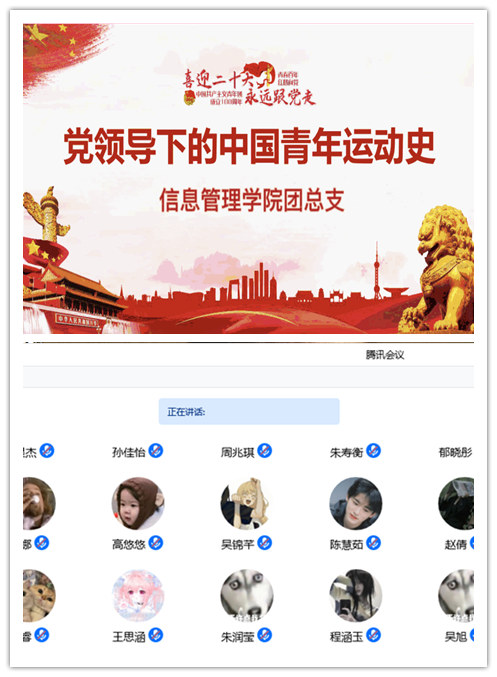 为激发学院广大团员青年进一步坚定理想信念,激发奋进力量。4月28日,信息管理学院团总支组织青年团员们开展“党的青年运动史”线上专题学习会,学习会由学院团总支书记朱沛老师进行授课,带领同学们一起重温体会不同时期中国青年运动华章。