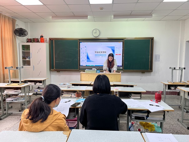 参加毕业论文(设计)答辩的同学,利用PPT先进行5-8分钟的毕业论文(设计)陈述,重点介绍毕业论文(设计)的重点和创新点,随后现场回答答辩老师提出的3个问题,至此完成毕业论文(设计)答辩环节。